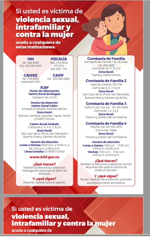- linea directorio policia nacional (ver https://www.policia.gov.co/ibague/directorio).